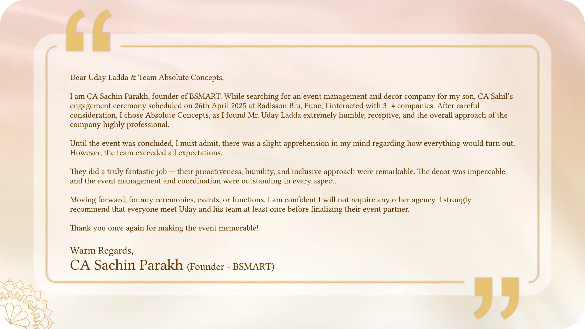 Impress your guests with beautifully designed Save-the-Date and RSVP cards that match your wedding theme. Our expert wedding planners in Pune craft every detail to perfection.
