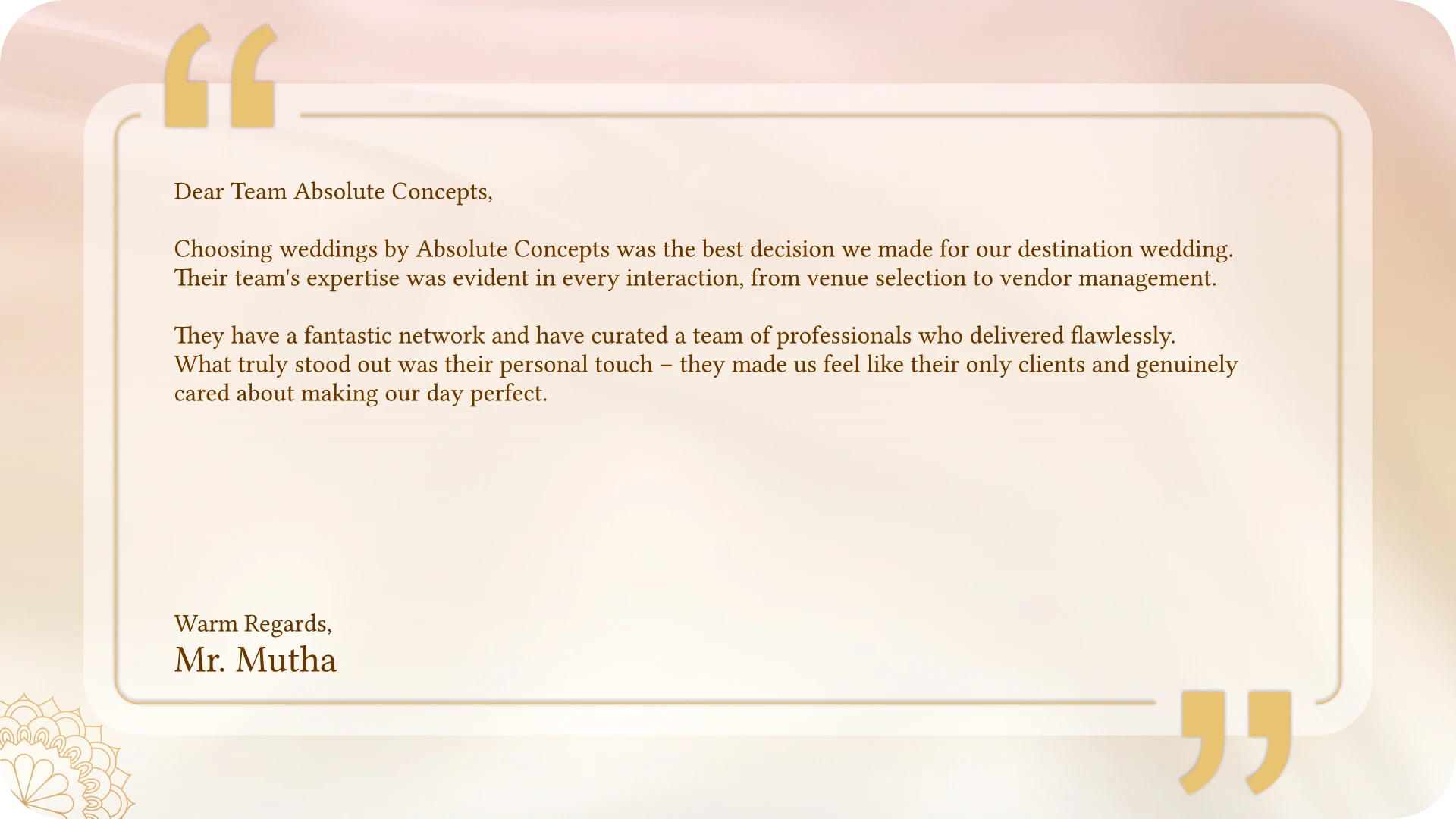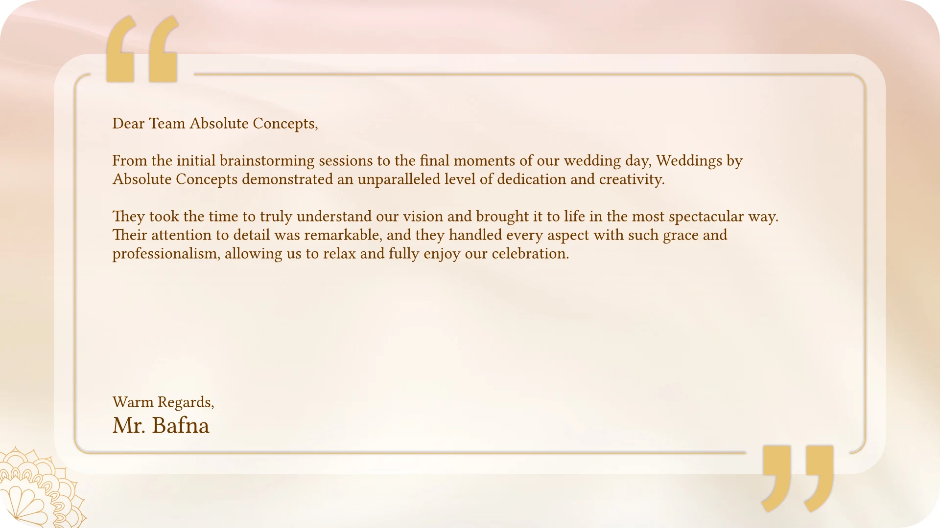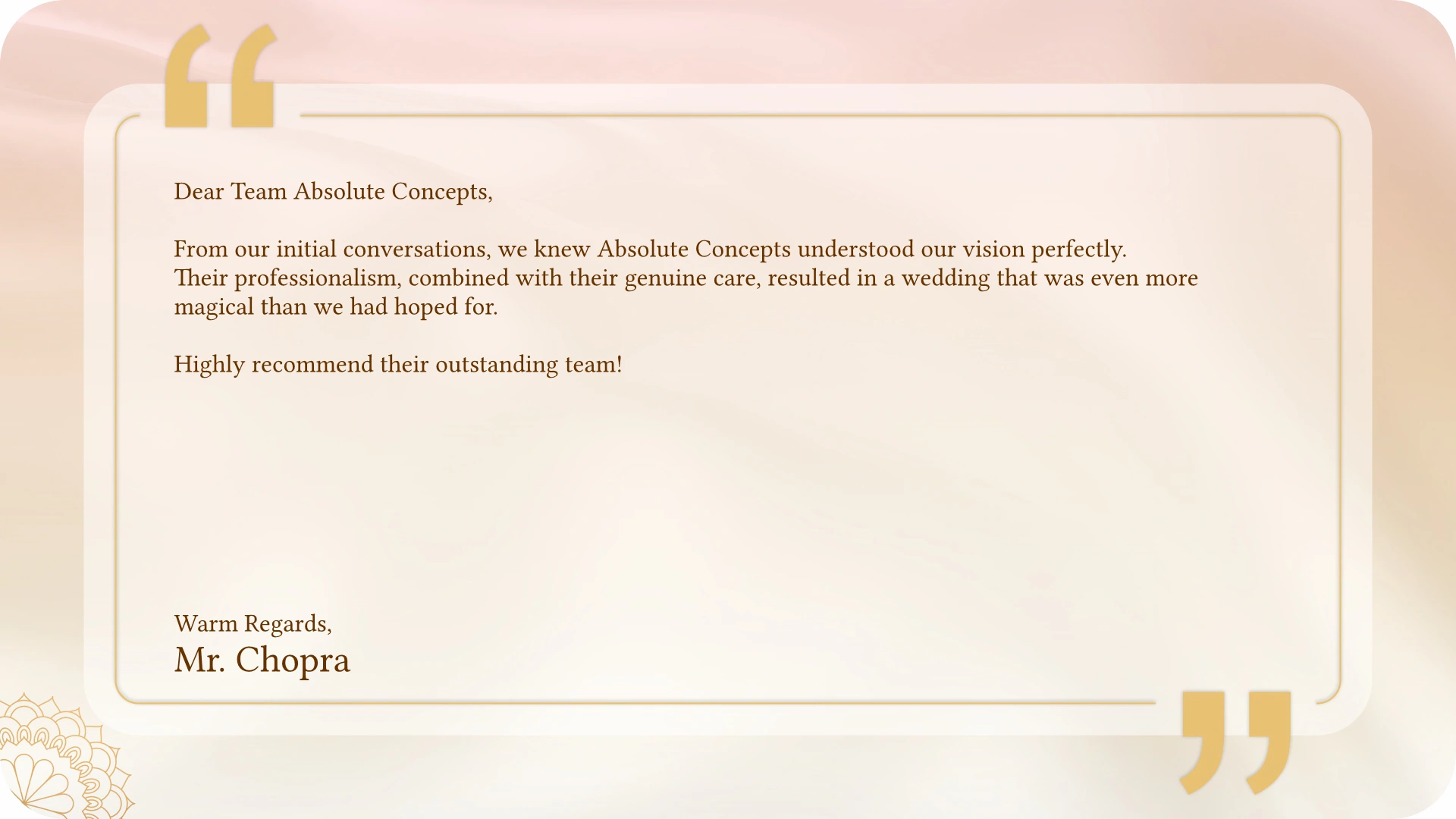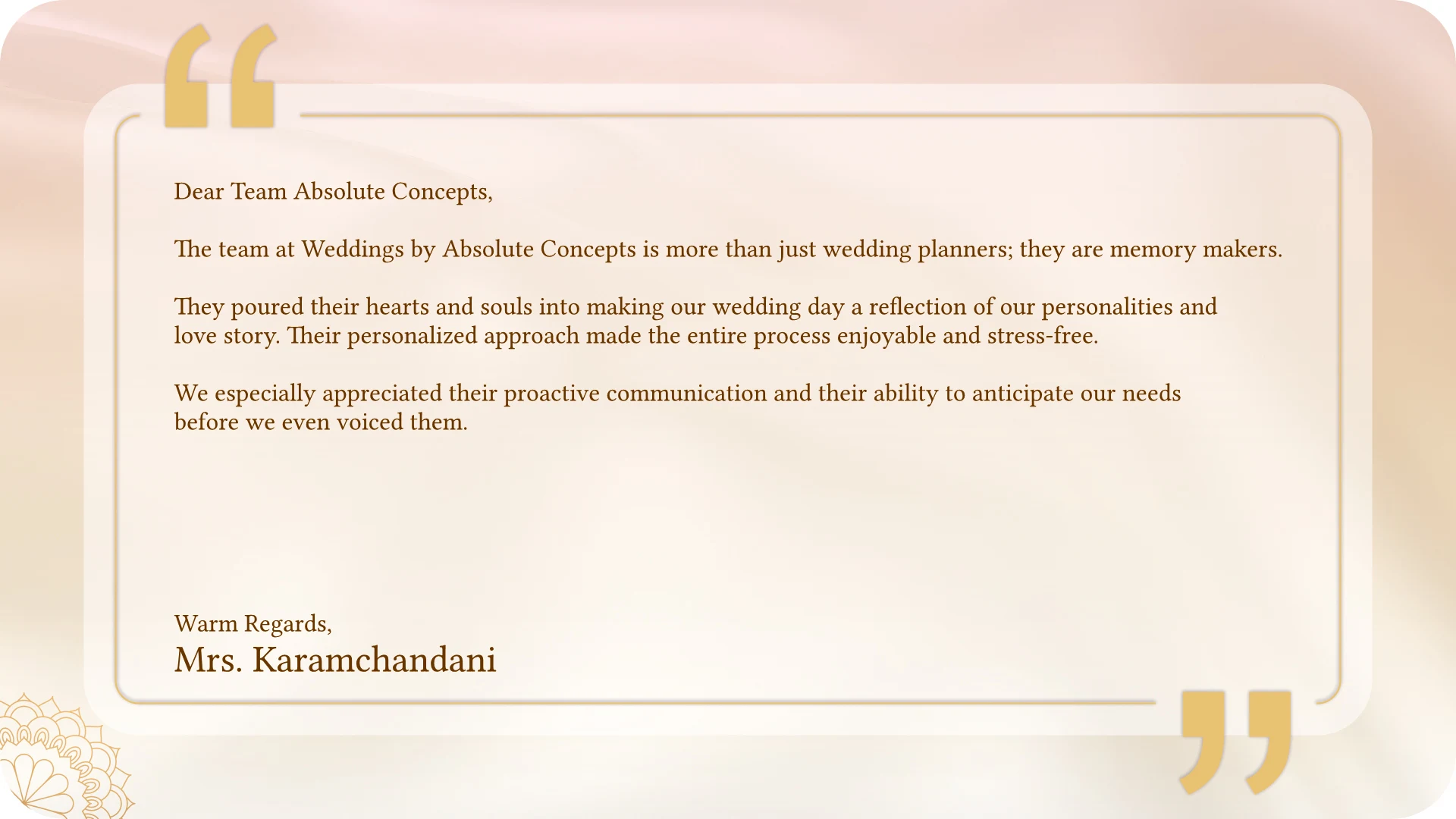 From personalized touches to complete design solutions, we help you create a wedding that perfectly reflects your style and love story.