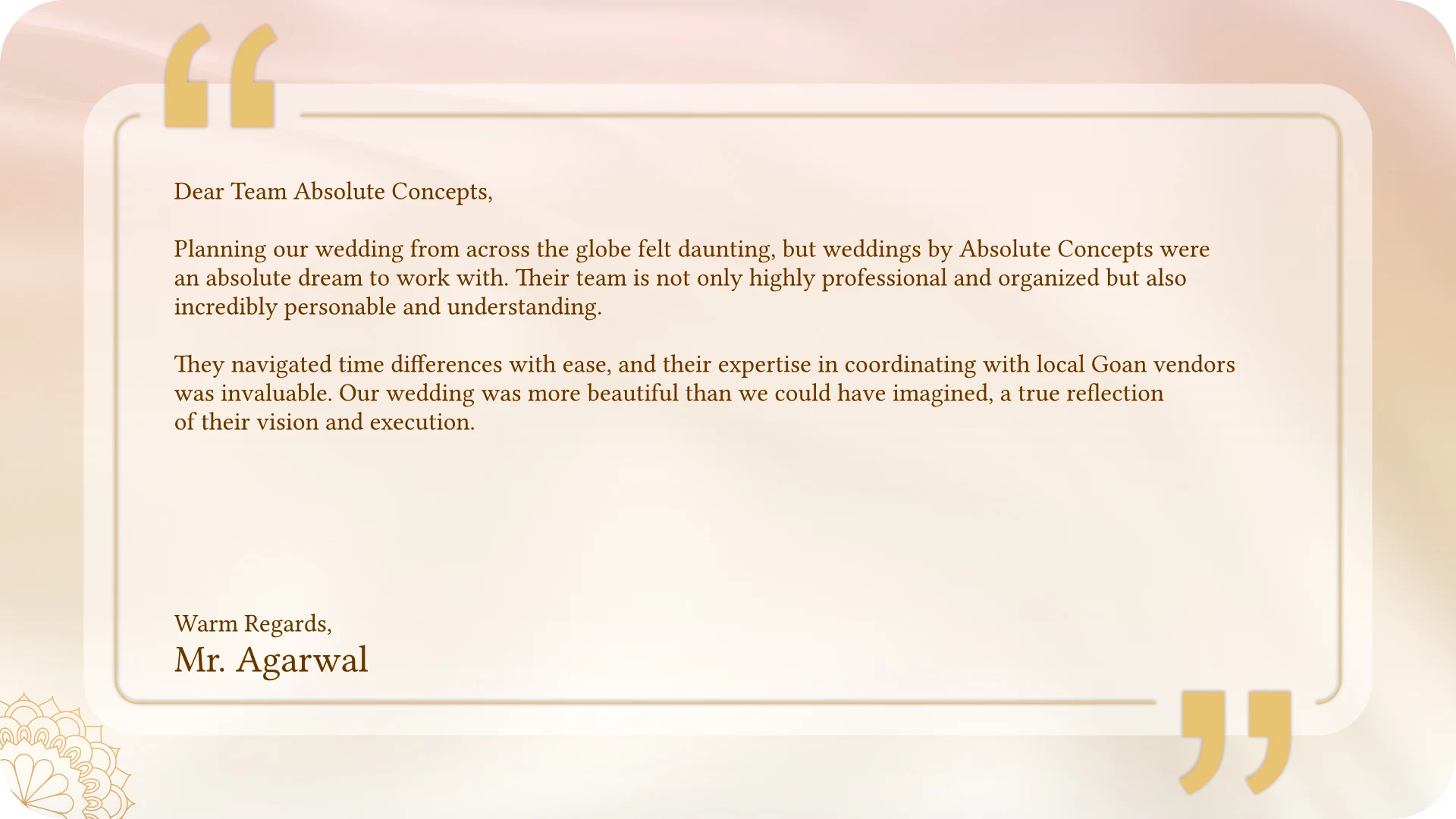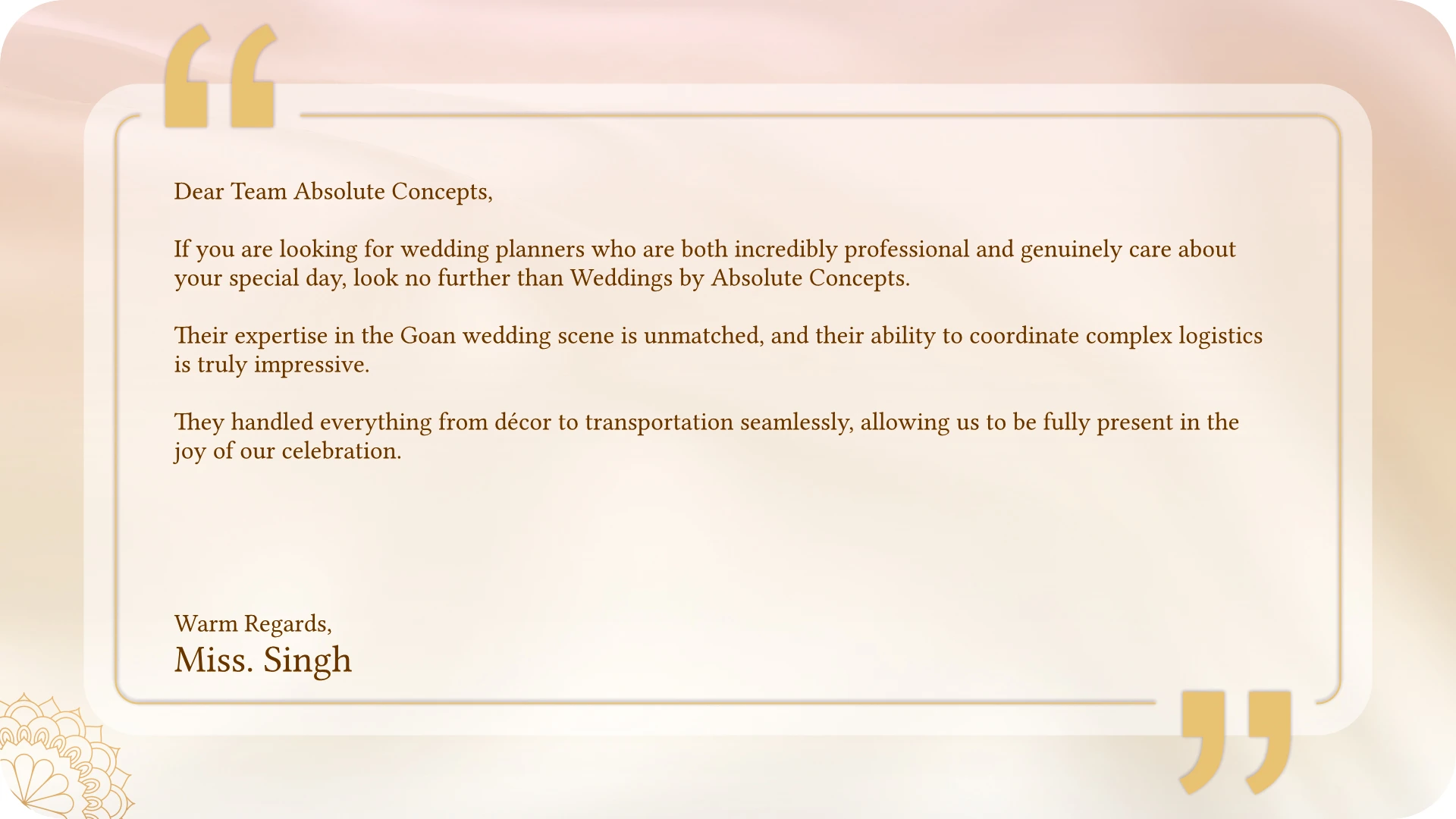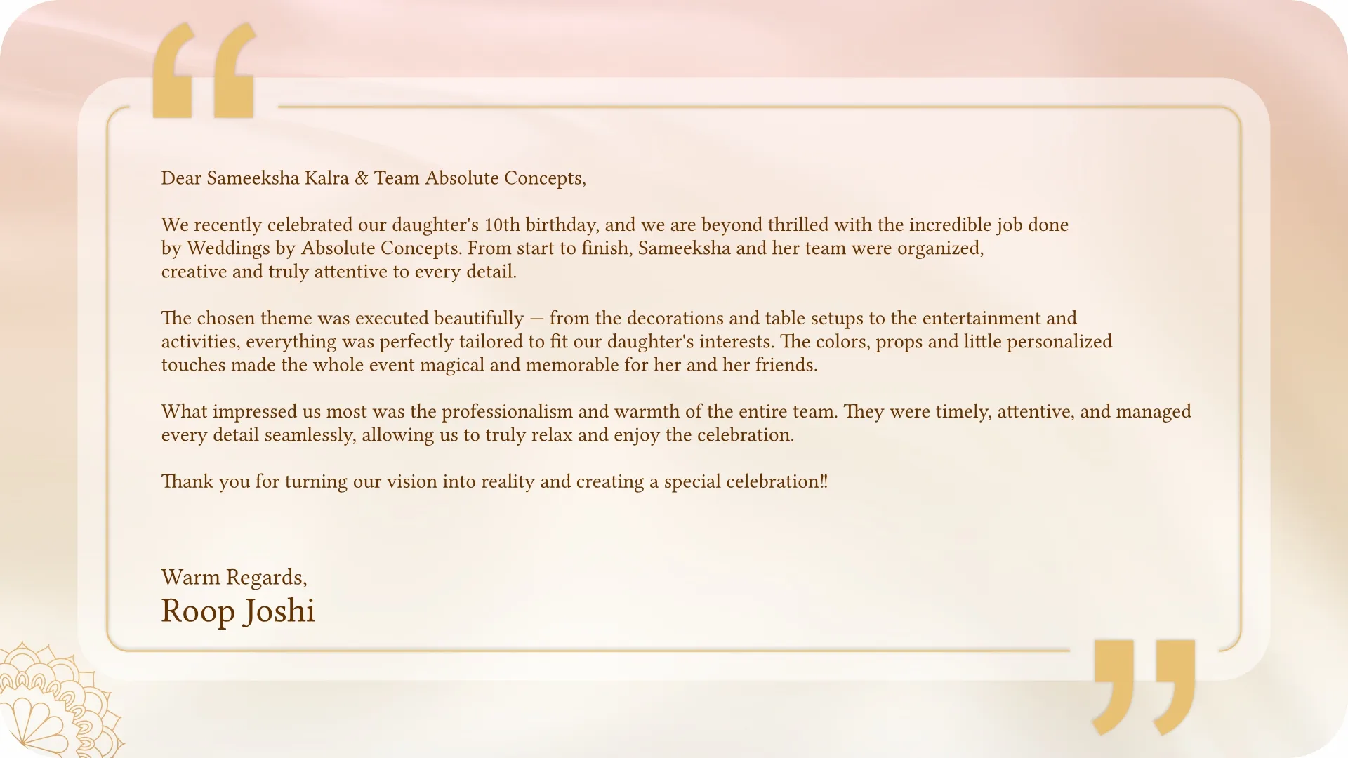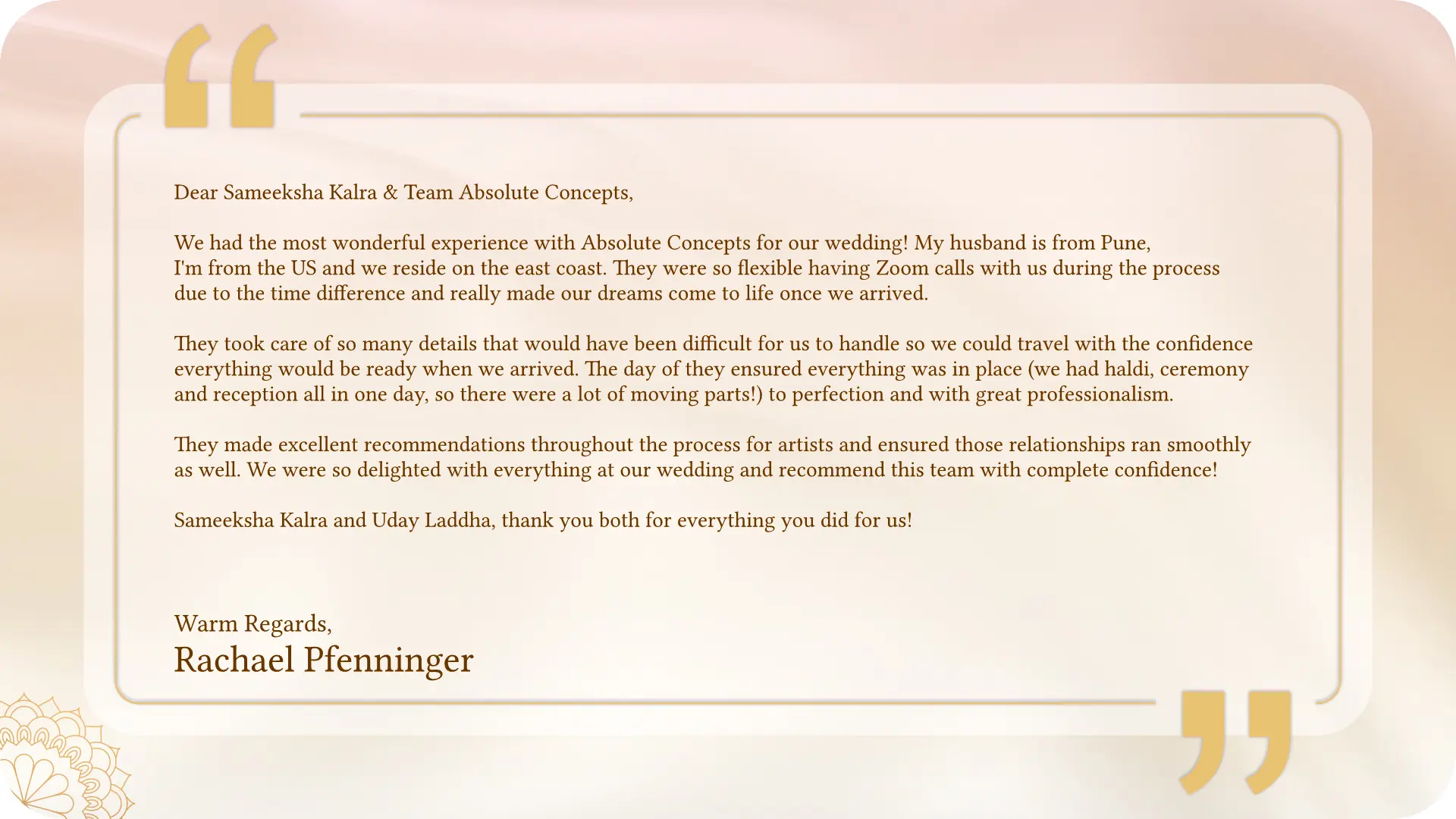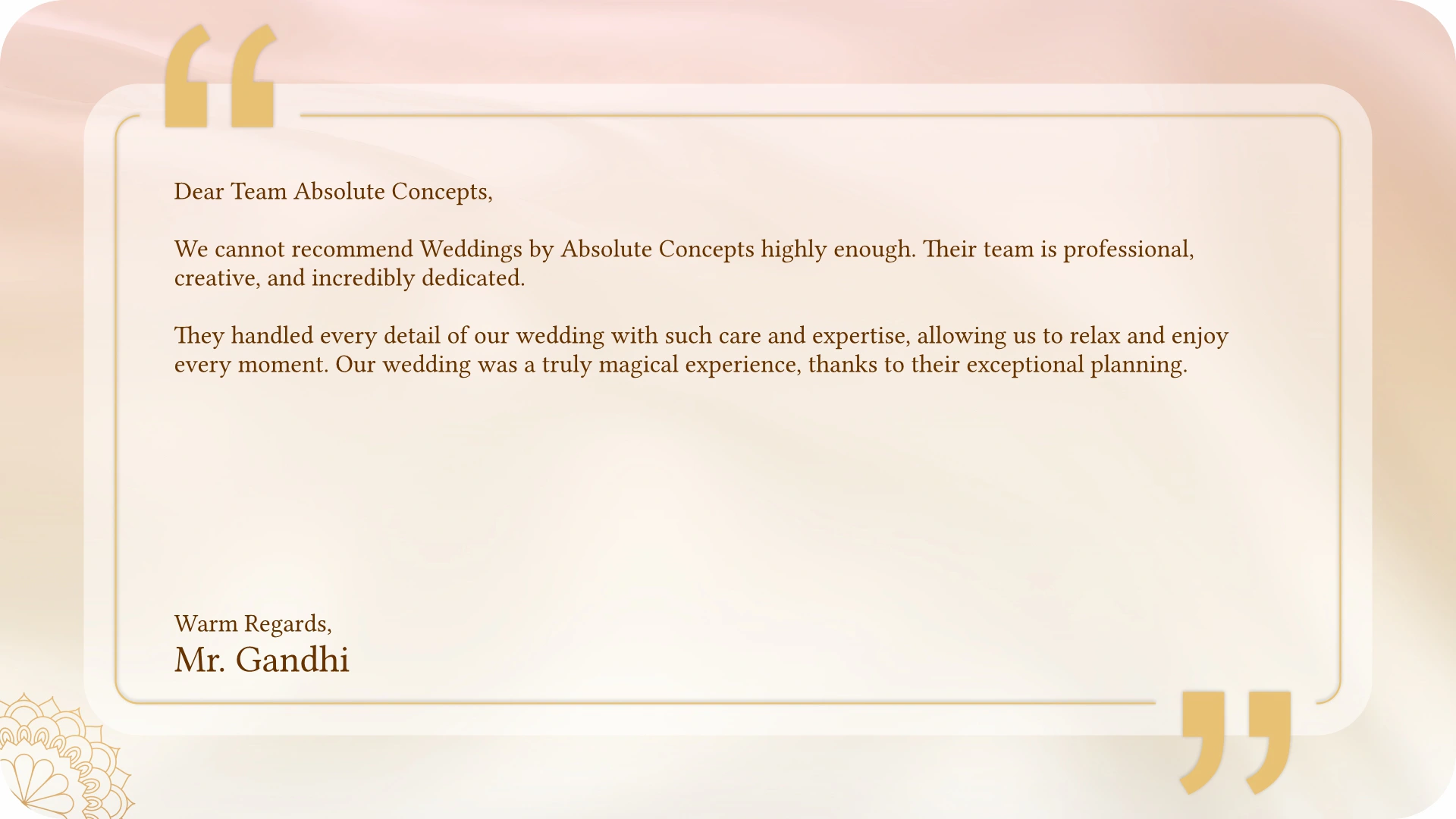 From personalized touches to complete design solutions, we help you create a wedding that perfectly reflects your style and love story.